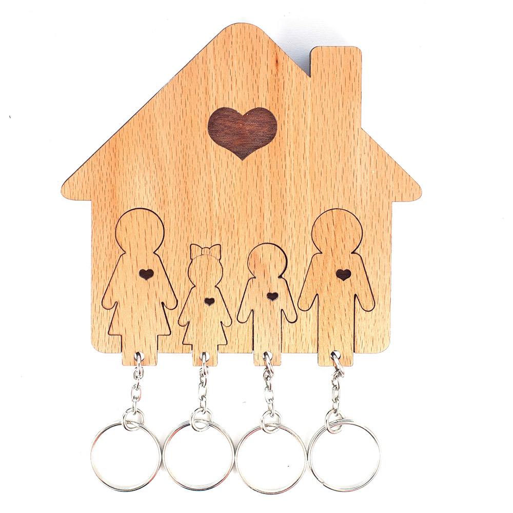Ключи от дома часто валяются в прихожей или сумке, и многие из нас тратят ценные минуты на их поиски. Ключницы Mimi - это не только практичный, но и очень уютный аксессуар, который украсит интерьер и станет надежным «хранителем» ваших ключей. Набор «Семья с сыном и дочерью» станет замечательным подарком на новоселье - помимо самой ключницы из качественной древесины, в него входят четыре фигурных брелка, которые вставляются в прорези на корпусе. Теперь ключи всегда будут под рукой, и вы не перепутаете комплекты.