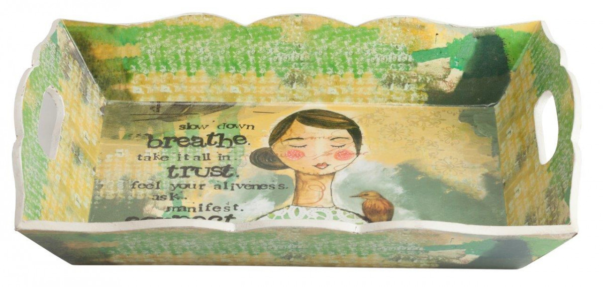 Декоративный поднос Palavra может стать изысканным украшением вашей кухни в стиле Прованс и незаменимым помощником в хозяйстве. Элемент декора изготовлен из экологически чистого материала, поэтому на нем смело можно подавать к столу разные кулинарные изыски. Яркие рисунки и надписи по всей поверхности подноса имеют небольшие искусственные потертости для придания ему винтажности и очарования. Аксессуар составит отличный набор-тройку с подносами Beauty и Dear You из той же коллекции.