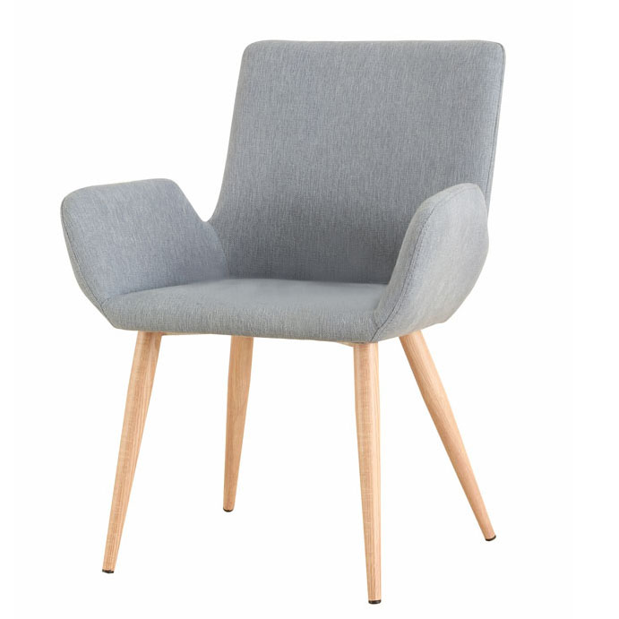 Стул на металлическом каркасе. Ножки: металл под дерево, цвет выбеленный дуб. Обивка: ткань, цвет синий.