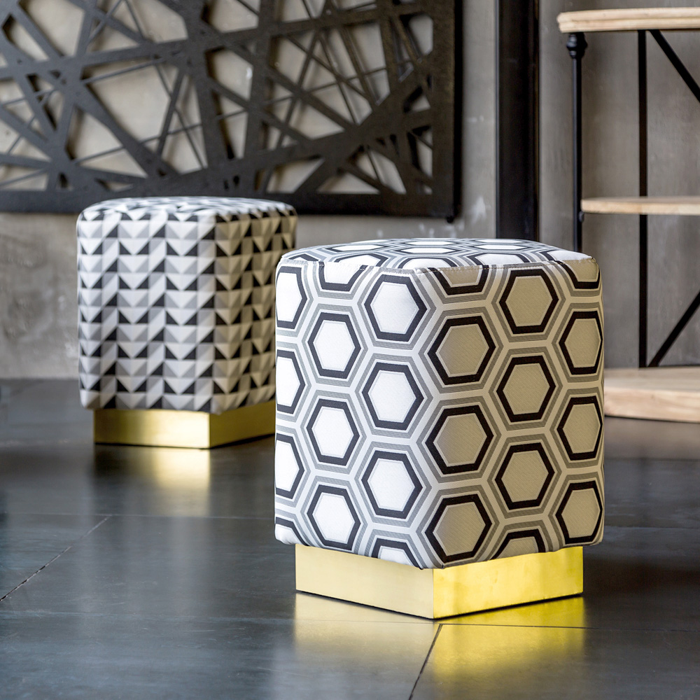 Прикроватная банкетка, или пуф, отлично дополняет интерьер гостиной, спальни, холла или прихожей. Банкетка, размещенная около кровати, визуально удлинит её. Необычная расцветка пуфа придаст комнате яркий акцент. К тому же, пуфы легки для перемещения. Это позволит периодически обновлять интерьер, обогащая комфортом любой домашний уголок. Геометрические орнаменты в стиле 80-х годов прошлого столетия – абсолютный тренд, который главенствует сегодня не только в одежде, но и в модных интерьерах. В одном предмете с легкостью объединились классика и мода, шик и комфорт, грация и прочность. Пуф «Оскар» прибыл в наши интерьеры из эпохи mid-century: он элегантен и сдержан, строгий силуэт смягчен закругленными углами и подсвечен золотистым отблеском постамента. Пуф имеет прочную опорную конструкцию, снабженную изрядной порцией поролона, который обещает полный комфорт. В нашей коллекции каждый пуф украшен глянцевым пьедесталом, - в ясную погоду, подобно солнечным зайчикам, комнаты заиграют игривыми отражениями света