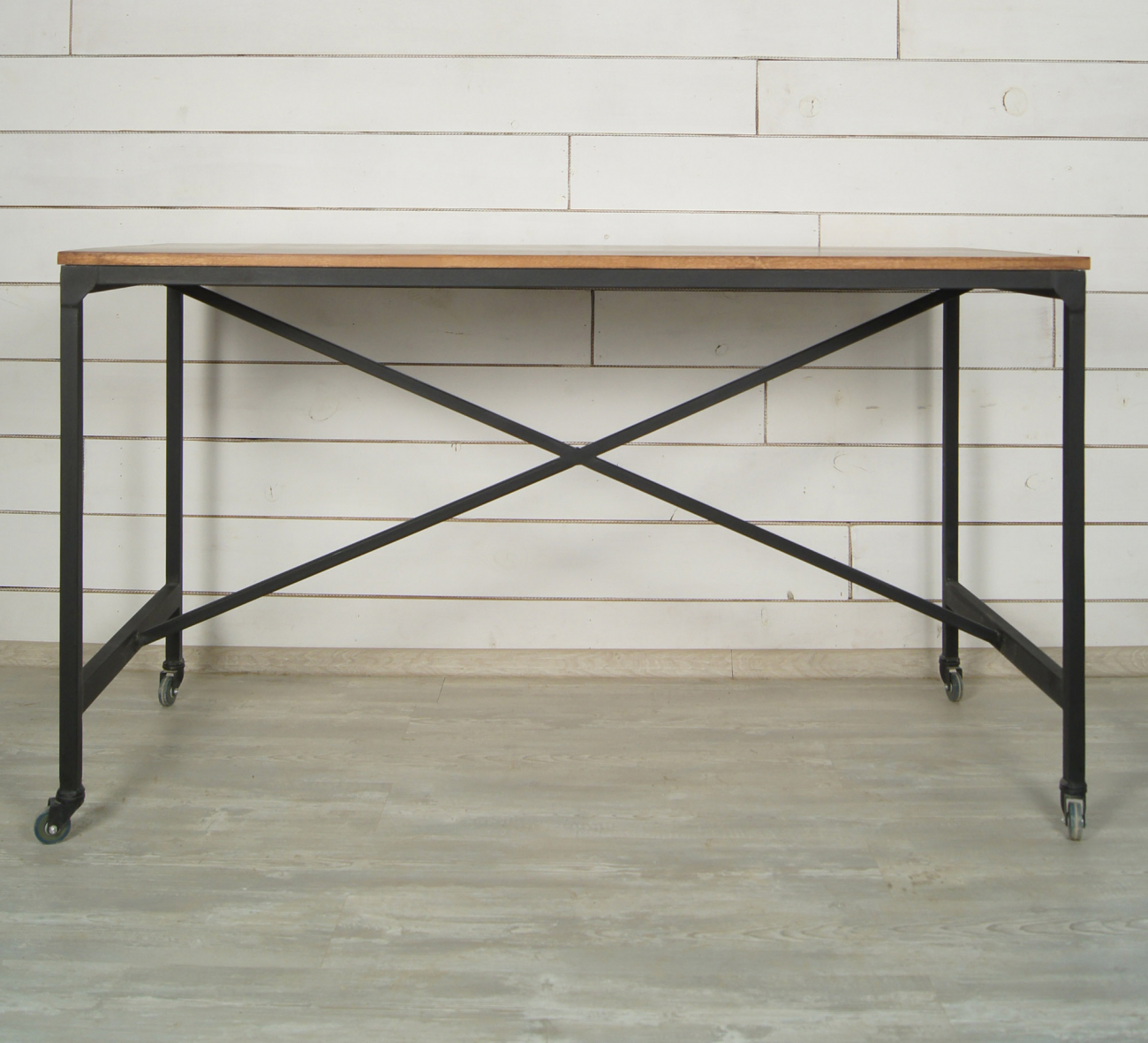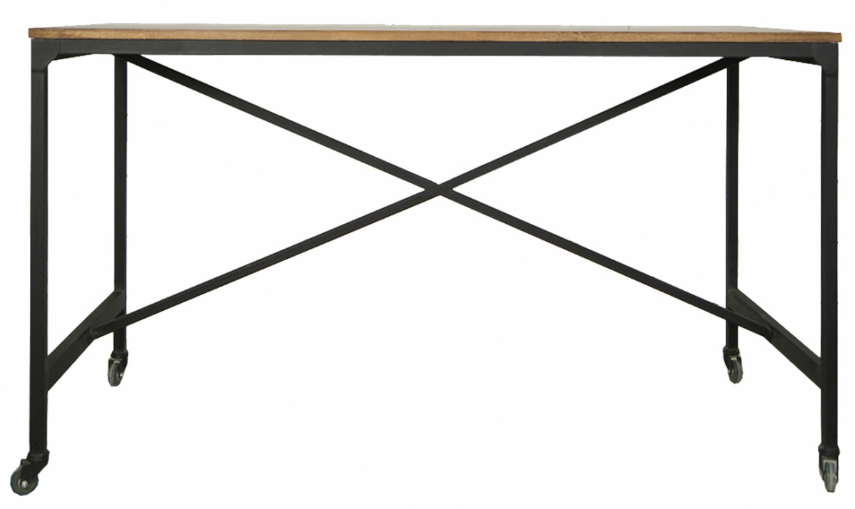 Цвет: Коричневый,Глубина, см: 70,Высота, см: 80,Ширина, см: 150,Материал: Металл, дерево,Размер: Средние,Стиль: Лофт,Форма: Прямоугольные,Цвет столешницы: Орех,Дизайн: США,Ножки: с металлическими ножками,Функциональность: Нераскладывающиеся,Опора: На колесиках,Тип стола: письменные, Рабочий стол «Industrial» коричневого цвета