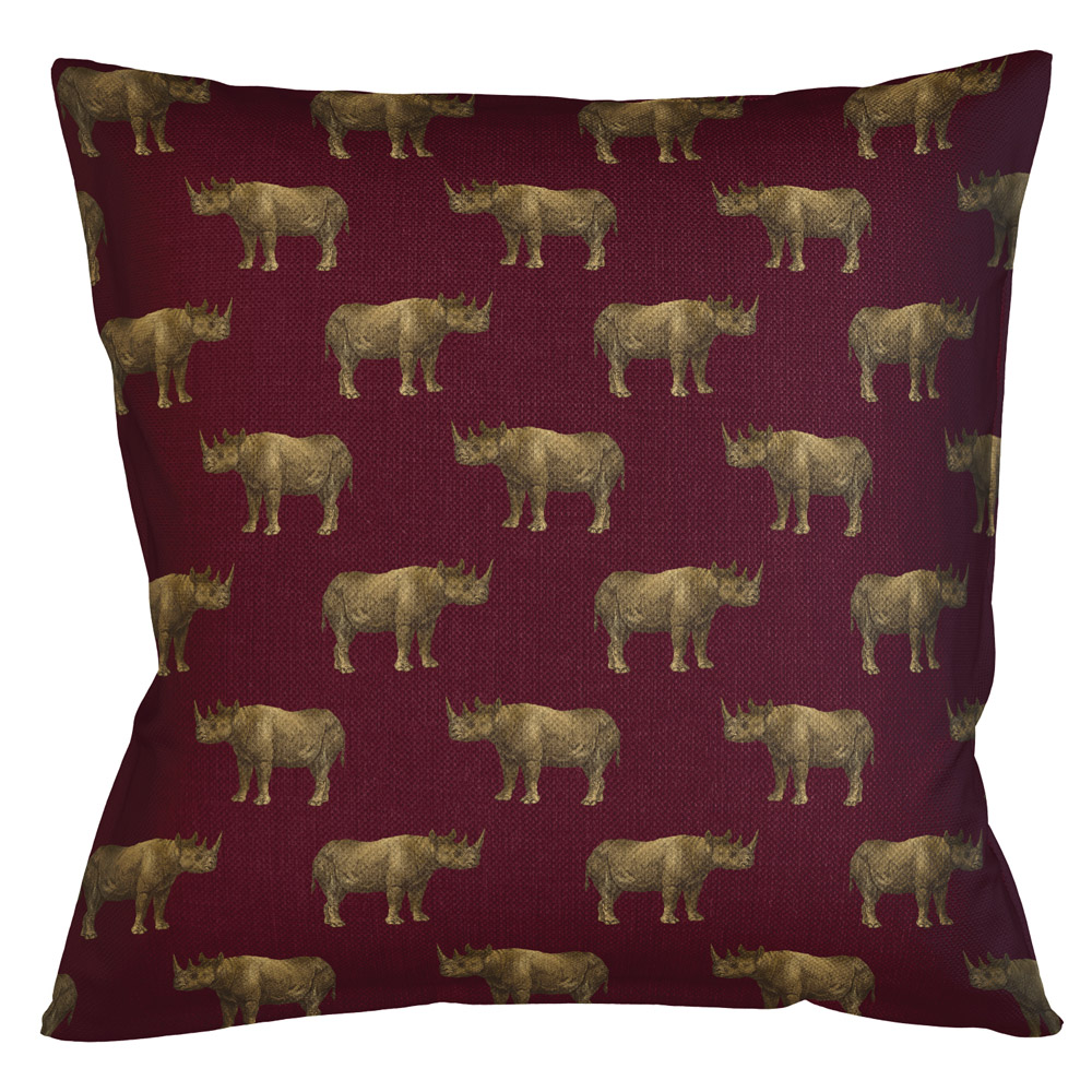 Интерьерная подушка «Группа носорогов в бордовом»